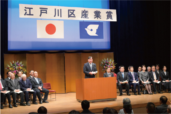 産業賞を受賞された皆様こそがその象徴であり、区内経済の活性化に大きく寄与されています。今後さらに各分野でご活躍いただき、まちに活力を与え地域力を育んでいただけると確信しております。