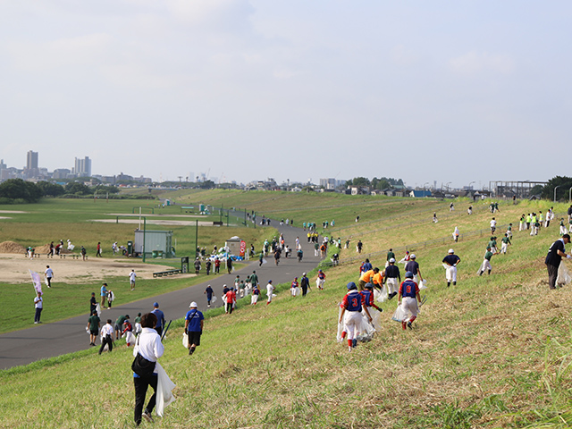 主催は、東京臨海ロータリークラブ。企業や地域団体、小・中学生の野球チームなど、総勢約800人が参加し、河川敷を4つのエリアに分けて清掃を実施。北は小岩緑地付近から、南はポニーランド付近から、それぞれ中間地点へ向かい協力してごみを拾い集める。子どもたちが元気に声をかけ合いながらごみを拾う姿は頼もしさを感じさせるものだった。