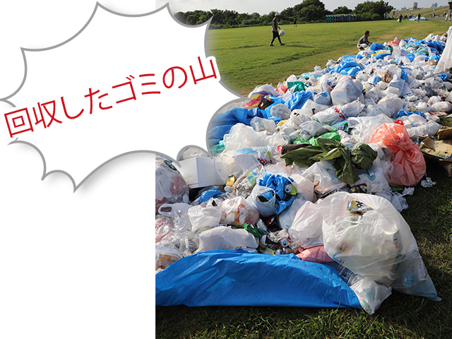猛暑の中、朝7時から9時までの2時間で集められたごみの量は膨大で、河川敷はいつもの美しさを取り戻した。ある野球チームの少年は、「このあと野球の練習があるのできれいにしないと」と話し、監督は、「この活動があるからすぐ練習に使える。普段使わせてもらってる場所だから、子どもたちにも責任を持って取り組むように伝えている」と語る。